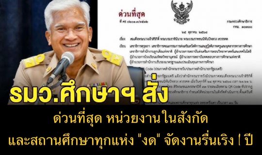 รมว.ศึกษาฯ สั่งด่วนที่สุด หน่วยงานในสังกัด และสถานศึกษาทุกแห่ง “งด” จัดงานรื่นเริง 1 ปี