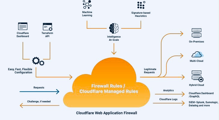 ทำหน้าที่เป็นโล่กำบัง (Reverse Proxy) คอยกรอง Traffic ว่าใครคือคนจริงๆ ใครคือแฮกเกอร์ หรือใครคือบอทที่ยิงถล่ม (DDoS) ก่อนที่จะปล่อยให้ผ่านไปถึงเซิร์ฟเวอร์จริง