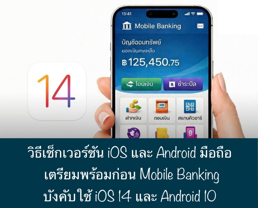 บทความนี้จะมานำเสนอเกี่ยวกับเรื่อง วิธีเช็กเวอร์ชัน iOS และ Android มือถือ เตรียมพร้อมก่อน Mobile Banking บังคับใช้ iOS 14 และ Android 10 กันนะคะ พร้อมแล้วตามมาดูกันเลยค่ะว่า วิธีเช็กเวอร์ชัน iOS และ Android มือถือ หลังสมาคมธนาคารไทยแจ้งด่วน อัปเดต Mobile Banking ต้องใช้ iOS 14 / Android 10 ขึ้นไป เริ่ม 14 กุมภาพันธ์ 2569 นี้ จะต้องทำอย่างไรกันบ้างนะคะ