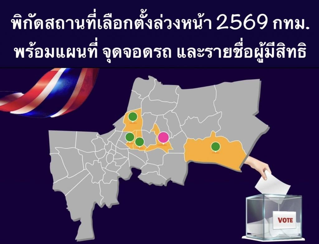 พิกัดสถานที่เลือกตั้งล่วงหน้า 2569 กทม. พร้อมแผนที่ จุดจอดรถ และรายชื่อผู้มีสิทธิ