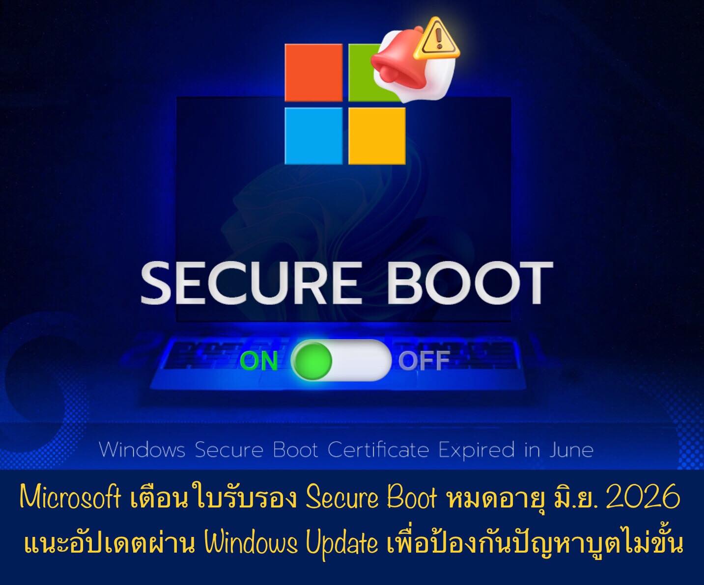 ล่าสุด Microsoft ได้ออกเอกสารเตือนพร้อมแนวทางปฏิบัติใหม่ว่า ใบรับรอง Secure Boot รุ่นเก่า (ปี 2011) ที่ใช้งานมากับระบบปฏิบัติการ Windows ตั้งแต่ Windows 8, 10, 11 รวมถึง Windows Server หลายรุ่น จะหมดอายุในเดือน มิถุนายน 2026