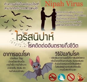 – การสัมผัสกับสัตว์ที่มีสารคัดหลั่งจากหมูหรือค้างคาวที่ติดเชื้อ