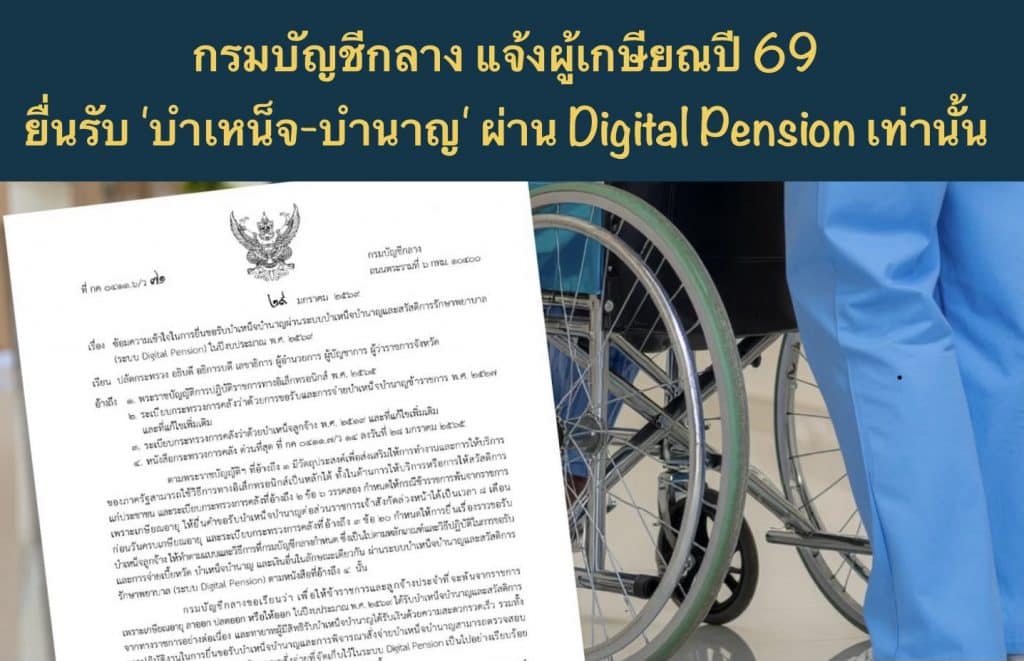 กรมบัญชีกลาง แจ้งผู้เกษียณปี 69 ยื่นรับ ‘บำเหน็จ-บำนาญ’ ผ่าน Digital Pension เท่านั้น