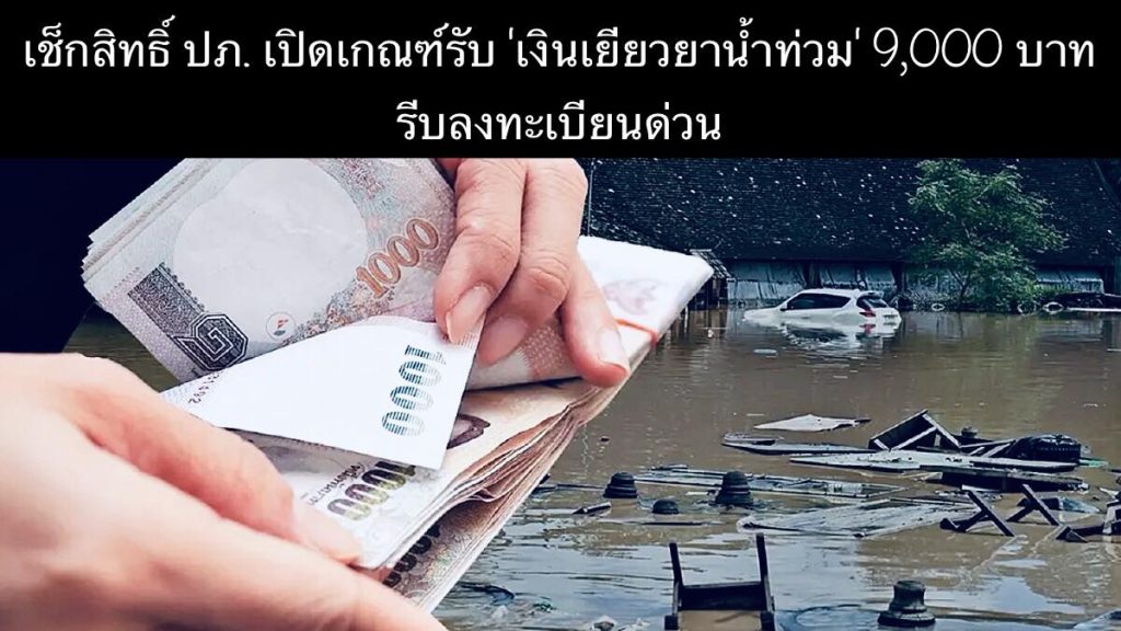 เช็กสิทธิ์ ปภ. เปิดเกณฑ์รับ ‘เงินเยียวยาน้ำท่วม’ 9,000 บาท ปี 2568 เงื่อนไข 4 แบบ ผู้ประสบอุทกภัย รีบลงทะเบียนด่วน อัปเดต ‘น้ำท่วมภาคใต้’ ผู้ประสบอุทกภัย ‘ลงทะเบียนรับเงินเยียวยา 9000’ วันนี้ 29 พฤศจิกายน 2568 กรมป้องกันและบรรเทาสาธารณภัย (ปภ.) เปิดเผยหลักเกณฑ์ให้ความช่วยเหลือผู้ประสบอุทกภัยในช่วงฤดูฝน ปี 2568 แบบเหมาจ่ายในอัตรา 9,000 บาท โดยประชาชนที่ได้รับผลกระทบจากน้ำท่วมเริ่มลงทะเบียนด้วยตนเองได้เลยผ่านระบบออนไลน์ที่