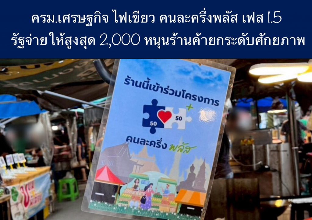 กำหนดอบรม ตั้งแต่ 19 พ.ย. – 19 ธ.ค.2568 เตรียมนำเข้า ครม. สัปดาห์หน้า ครม.เศรษฐกิจ ไฟเขียว คนละครึ่งพลัส เฟส 1.5 รัฐจ่ายให้สูงสุด 2,000 หนุนร้านค้ายกระดับศักยภาพ นายเอกนิติ นิติทัณฑ์ประภาศ รองนายกรัฐมนตรีและรมว.คลัง กล่าวว่า ที่ประชุมคณะกรรมการนโยบายเศรษฐกิจ (ครม.เศรษฐกิจ) ที่มีนายอนุทิน ชาญวีรกูล นายกรัฐมนตรีและรมว.มหาดไทย เป็นประธาน เมื่อวันที่ 10 พ.ย. 2568 ได้เห็นชอบ โครงการพัฒนาความรู้ทักษะ (Upskill) หรือเรียนรู้ทักษะใหม่ (Reskill) สำหรับร้านค้าที่เข้าร่วมโครงการคนละครึ่งพลัส นับเป็นโครงการคนละครึ่งพลัส เฟส 1.5 เพื่อยกระดับศักยภาพร้านค้ารายย่อยให้สามารถปรับตัวสู่เศรษฐกิจดิจิทัลได้อย่างยั่งยืน มีเป้าหมายร้านค้าเข้าร่วม 400,000 ราย จากปัจจุบันที่มีร้านค้าลงทะเบียนในโครงการคนละครึ่ง พลัส 858,991 ราย ในจำนวนนี้มีร้านค้าประเภทอาหารและเครื่องดื่มที่ลงทะเบียนกับผู้ให้บริการระบบขนส่งอาหาร (Food Delivery Platform) ซึ่งประกอบด้วย แกร็บ ไลน์แมน โรบินฮู้ด และช็อปปี้ฟู้ด อยู่แล้ว 58,947 ราย คิดเป็น 6.86% ของร้านค้าที่เข้าร่วมโครงการคนละครึ่ง พลัส ทั้งหมด