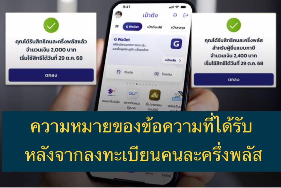 ความหมายของข้อความที่ได้รับ หลังจากลงทะเบียนคนละครึ่งพลัส