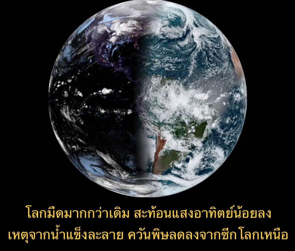 โลกมืดมากกว่าเดิม สะท้อนแสงอาทิตย์น้อยลง เหตุจากน้ำแข็งละลาย ควันพิษลดลงจากซีกโลกเหนือ