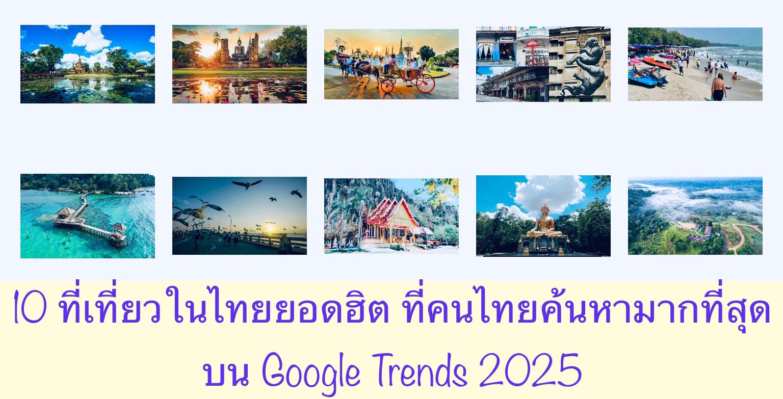 บทความนี้จะมานำเสนอเกี่ยวกับเรื่อง 10 ที่เที่ยวในไทยยอดฮิต ที่คนไทยค้นหามากที่สุดบน Google Trends 2025 กันนะคะ สำหรับใน ปี 2025 นี้ ต้องบอกเลยนะคะว่า คนไทยยังคงให้ความสนใจท่องเที่ยวในประเทศอย่างต่อเนื่องกันเลยค่ะ พร้อมแล้วตามมาดูกันเลยค่ะว่า 10 ที่เที่ยวในไทยยอดฮิต ที่คนไทยค้นหามากที่สุดบน Google Trends 2025 จะมีที่ไหนกันบ้างนะคะ