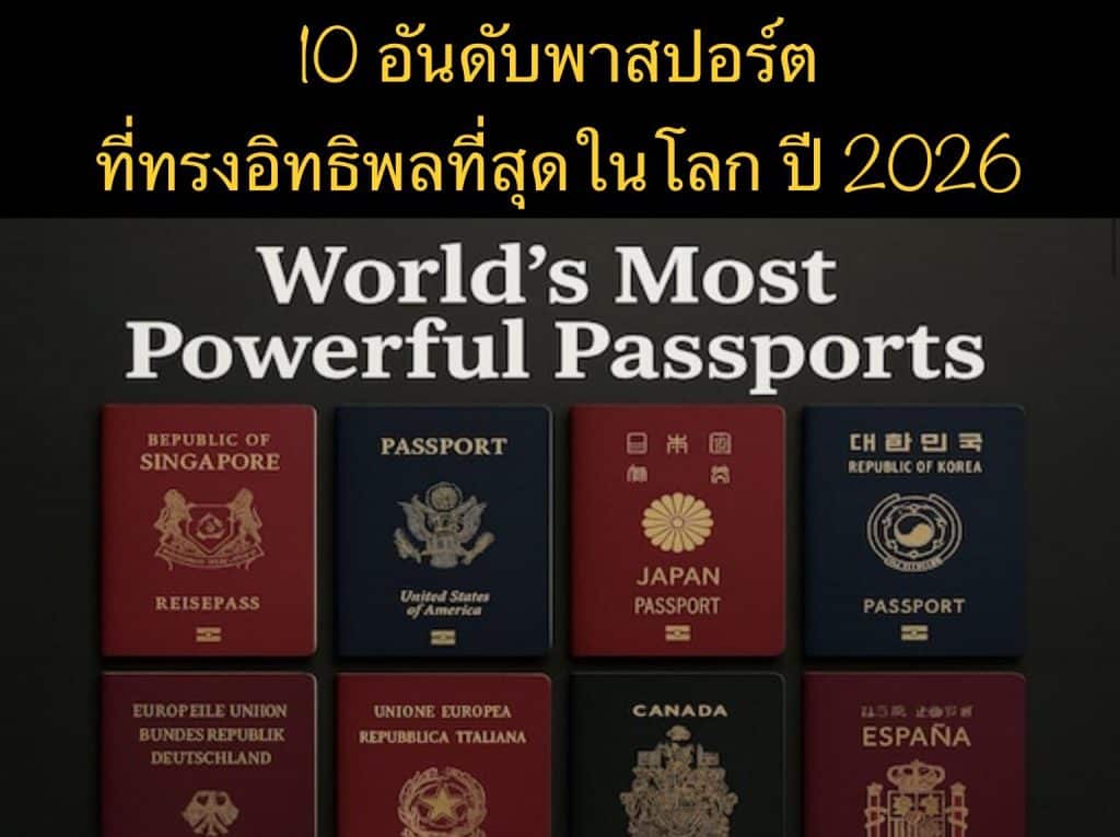 บทความนี้จะมานำเสนอเกี่ยวกับเรื่อง 10 อันดับพาสปอร์ต ที่ทรงอิทธิพลที่สุดในโลก ปี 2026 กันนะคะ เปิด 10 อันดับ “พาสปอร์ตทรงอิทธิพลที่สุดในโลก” ปี 2026 สิงคโปร์ครองแชมป์สมัยที่ 4 เลยนะคะ ส่วนอันดับอื่นๆ จะมีพาสปอร์ตประเทศไหนกันบ้าง พร้อมแล้วตามมาดูกันเลยค่ะ