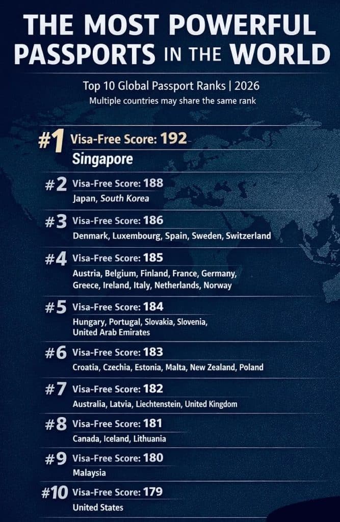 10 อันดับพาสปอร์ต ที่ทรงอิทธิพลที่สุดในโลก ปี 2026