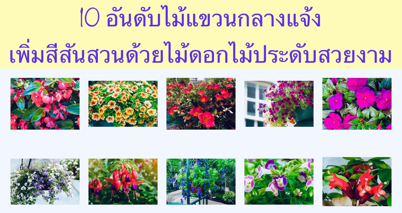 10 อันดับไม้แขวนกลางแจ้ง เพิ่มสีสันสวนด้วยไม้ดอกไม้ประดับสวยงาม