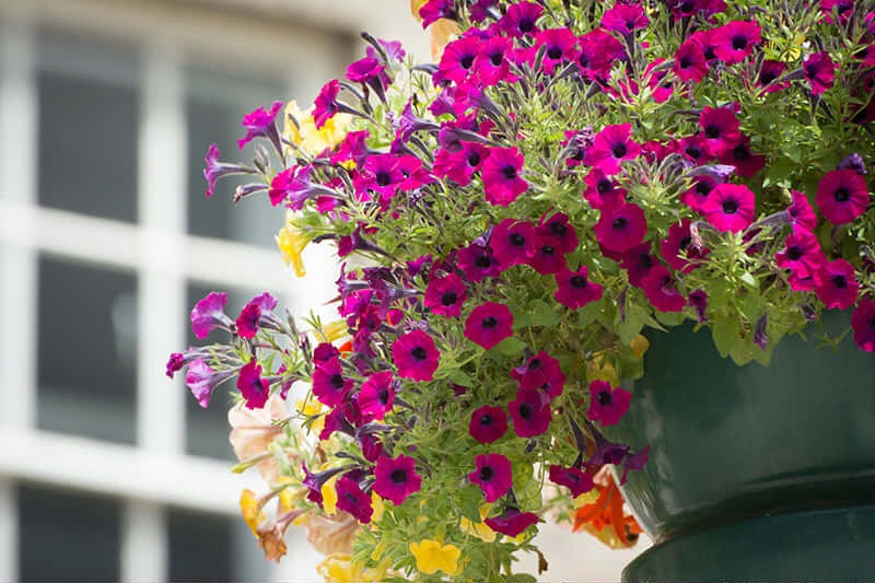 พิทูเนีย โดยเฉพาะสายพันธุ์ Wave เป็นตัวเลือกที่ยอดเยี่ยมสำหรับไม้แขวนนอกบ้าน เพราะมีลักษณะเด่นคือการเติบโตแบบเลื้อยและดอกรูปแตรที่บานสะพรั่งสวยงามตลอดทั้งปี พิทูเนียสายพันธุ์นี้ปลูกและดูแลรักษาง่ายมาก เพียงแค่ปลูกในที่ที่ได้รับแสงแดดจัดและรดน้ำเมื่อหน้าดินแห้งก็เพียงพอ นอกจากจะให้สีสันสดใสแก่สวนของคุณแล้ว ยังสามารถแผ่กิ่งก้านคลุมพื้นที่ได้กว้างถึง 4 ฟุต ทำให้เหมาะสำหรับกระเช้าแขวนหรือปลูกคลุมดิน และยังมีความทนทานต่อสภาพอากาศร้อนและเย็นได้ดีอีกด้วย